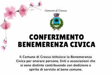 Il Comune di Cressa ha istituito con Deliberazione del Consiglio Comunale n.30 del 28.09.2024, la Benemerenza Civica per onorare Persone, Enti o Associazioni che si siano particolarmente...