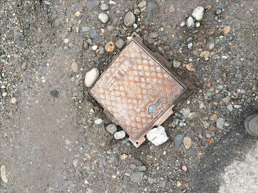 Un tombino posizionato in via Partigiani di fronte al nr. 10 non è praticamente cementato nella strada ed esce dalla sua sede, rischiando di lasciare aperto lo scavo sottostante.
