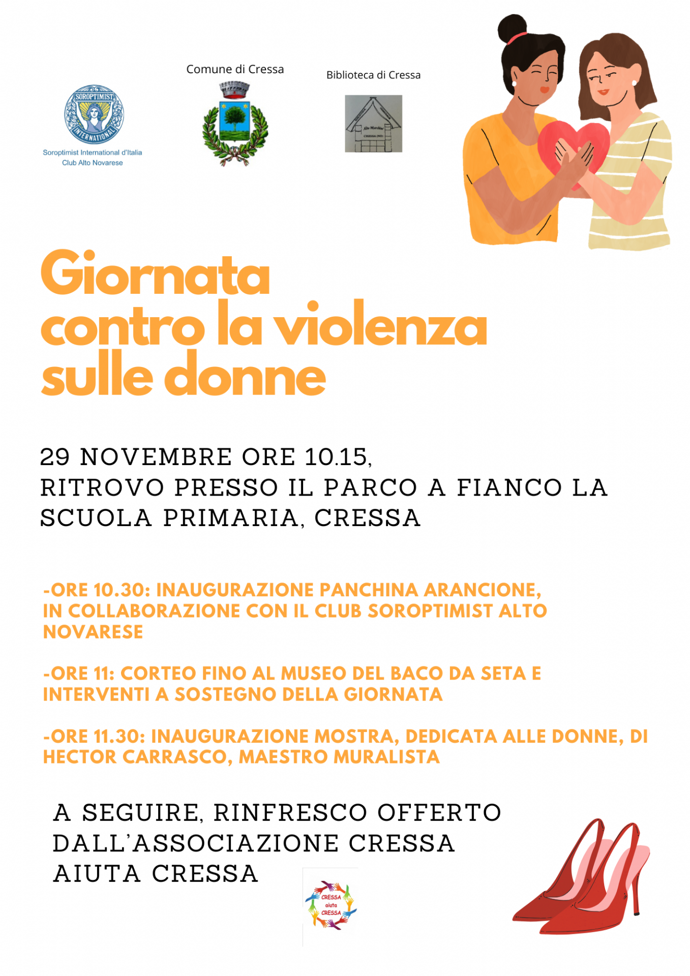 Il Sindaco e l'Amministrazione Comunale di Cressa celebrano, con la collaborazione della Biblioteca Civica Comunale, la "Giornata contro la violenza sulle Donne" Sabato 29 Novembre 2025 con una serie di eventi: